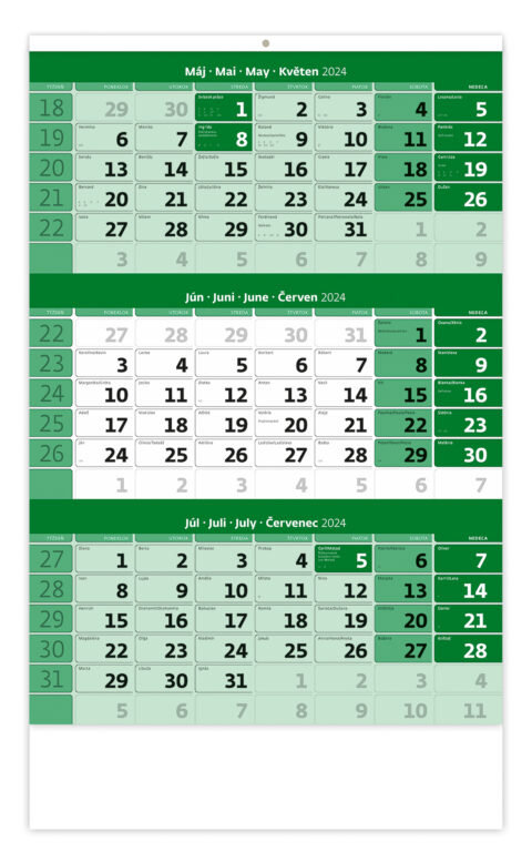 Trojmesačný pracovný kalendár zelený prečítať celé