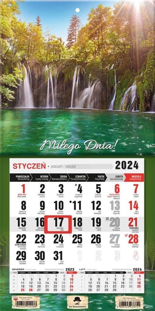Kalendarz Trójdzielny JEDNODZIELNY MINI Z MAGNESEM. Format 230/460mm. Układ kalendariów jednodzielny z przesuwnym okienkiem. Główka z otworem wierconym oraz magnesem to doskonała propozycja do przyczepienia na lodówkę. Dodatkowo nazwy miesiąca i dni tygodnia w języku Ukraińskim, Angielskim i...