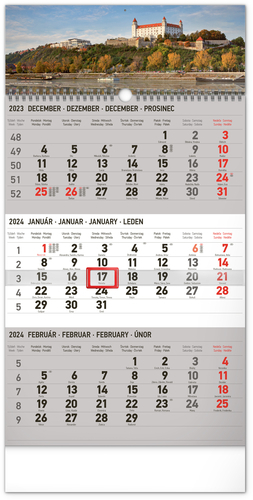 3-mesačný Nástenný kalendár 2024 - Bratislava šedý so slovenskými menami