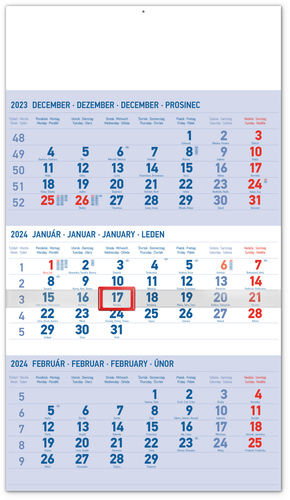 3-mesačný Nástenný kalendár 2024 - modrý so slovenskými menami