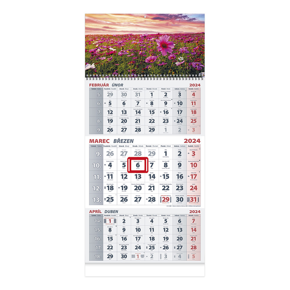 Kalendár nástenný Trojmesačný/1-špirála 2024 - Lúka (česky)