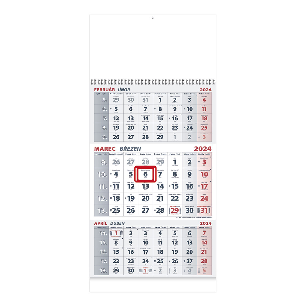 Kalendár nástenný Trojmesačný/1-špirála 2024 - Biely (česky)