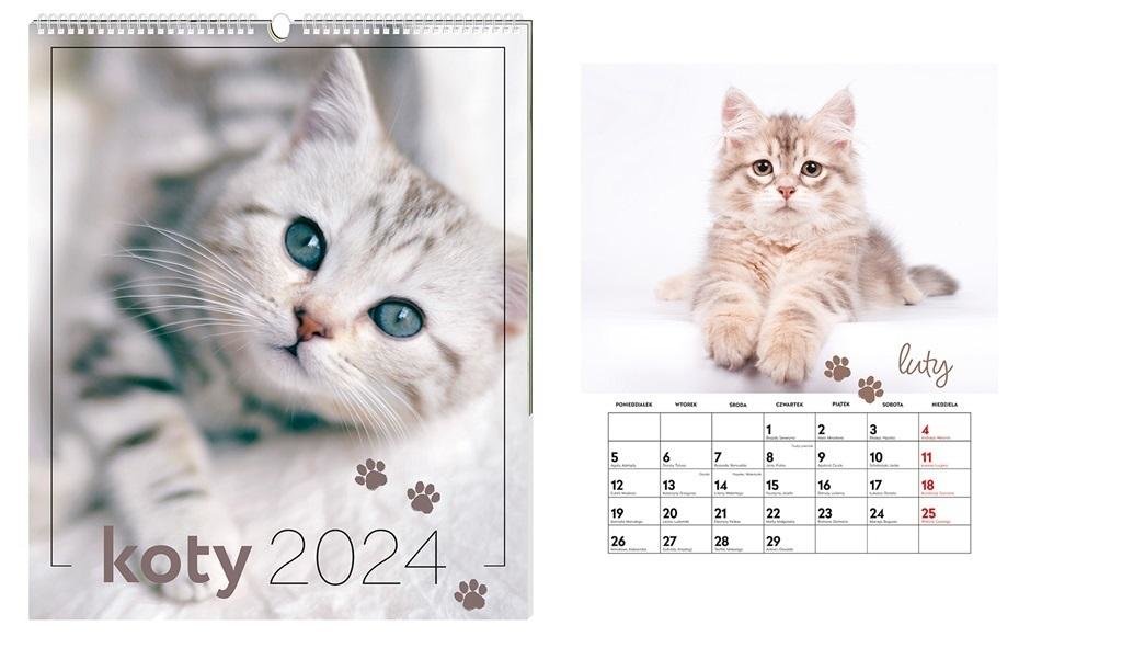 Kalendarz 2024 ścienny plansz. 30,5x40cm Koty (polsky)