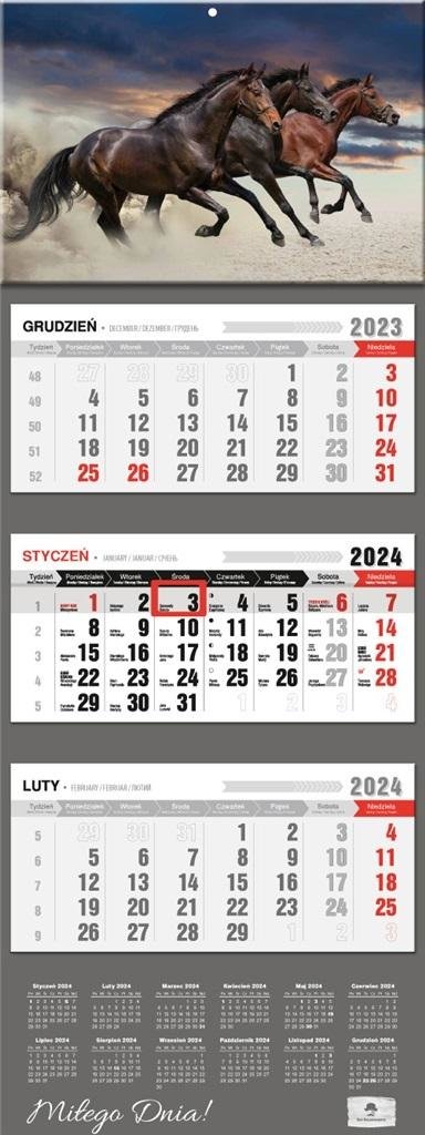 Kalendarz 2024 trójdzielny Konie (polsky)