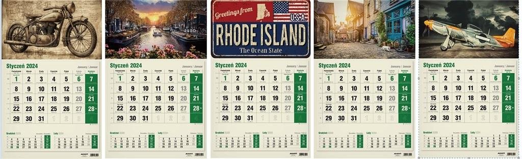 Kalendarz Jednodzielny pasuje wszędzie tam, gdzie na trójdzielny brakuje miejsca, a zależy nam na podglądzie poprzedniego i następnego miesiąca. Kalendaria zawierają oznaczenia miesięcy i dni tygodnia w trzech językach (PL, EN, DE) oraz imieniny i typowe święta. Drukowany na papierze typu Kraft (ekologicznym).