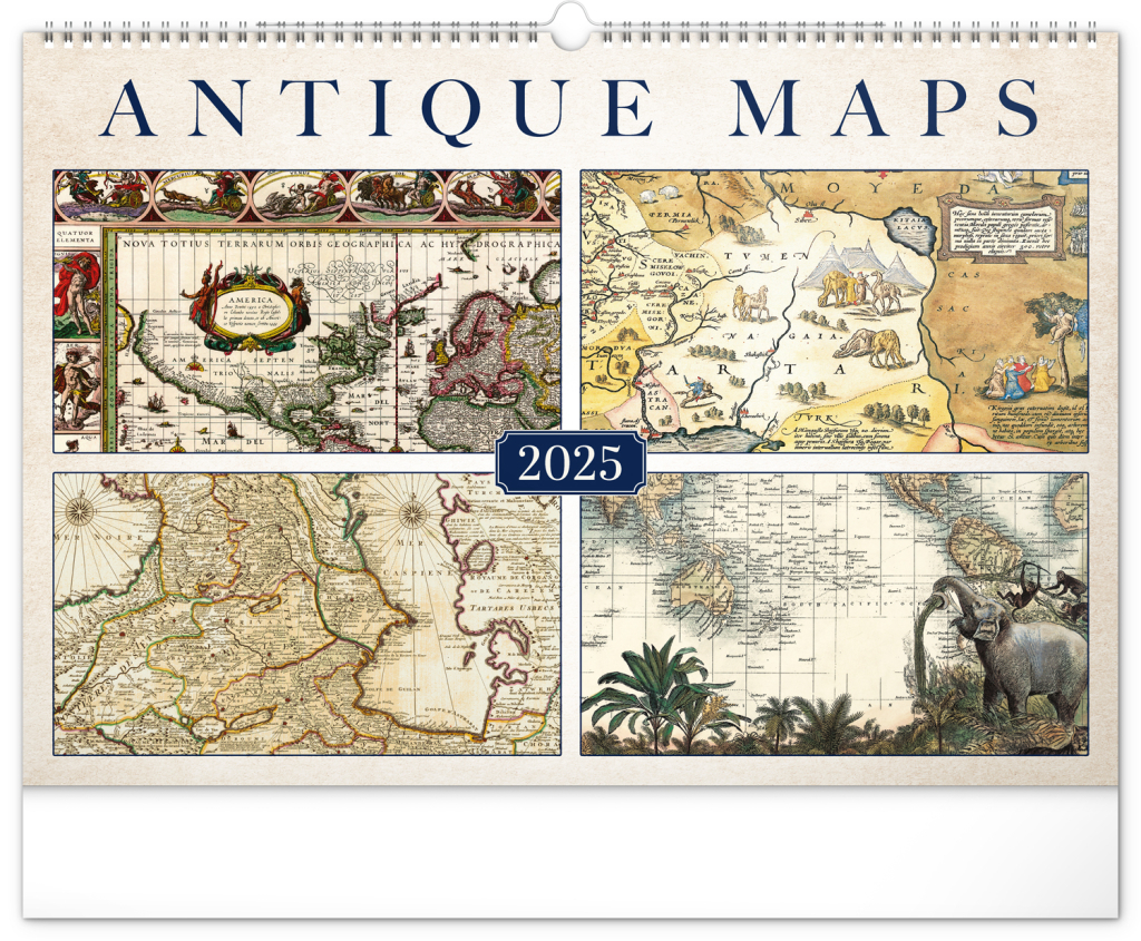 Nástenný kalendár Staré mapy 2025 je ideálnou voľbou pre všetkých, ktorí ocenia ručne vytvorené mapy z dávnych čias. Jeho detailné kresby zaujmú každého znalca historických dokumentov i fanúšika úžitkového umenia. Prehľadné a jednoduché kalendárium na bielom pozadí zaistí, že prehľad o dôležitých dátumoch budete mať vždy na dosah ruky, a to elegantne a s vkusom.