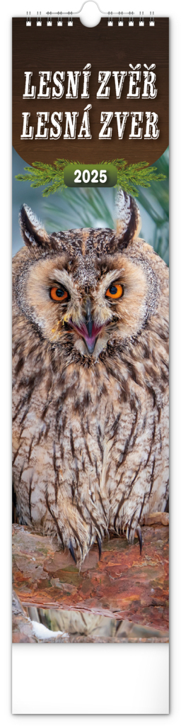 Nástěnný kalendář Lesní zvěř – Lesná zver 2025, 12 × 48 cm (česky)