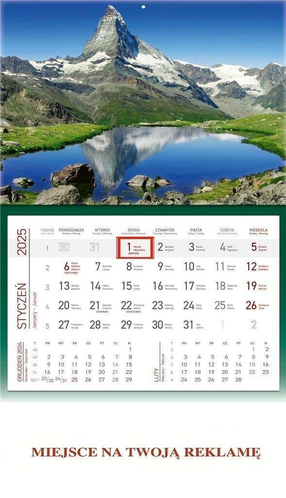 Kalendarz 2025 ścienny jednodzielny Góry (polsky)