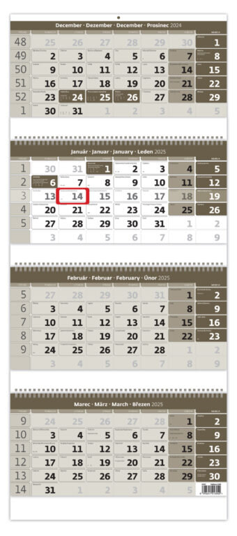 Slovenský štvormesačný kalendár šedý so špirálou (česky)
