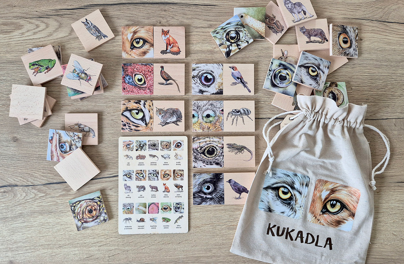 Podívej se zvířatům z blízka do očí a objevuj přírodu hravě. • KUKADLA vyrábí u nás v dílně české ruce z kvalitního českého certifikovaného dřeva. • Balení obsahuje celkem 40 dílků o rozměru 68 × 68 × 7 mm. • Součástí balení je destička se správným řešením. • Baleno v látkovém...