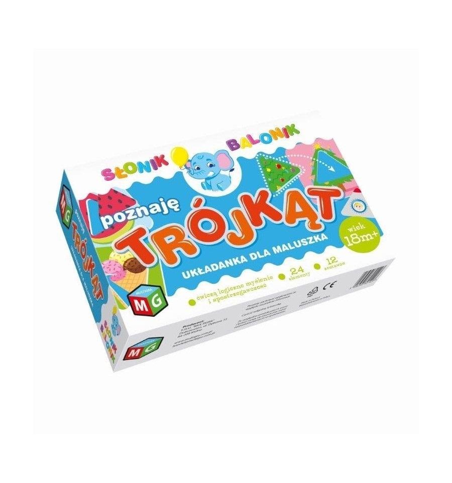 "POZNAJĘ TRÓJKĄT" to pierwsza układanka dla maluchów. Duże i proste elementy to doskonały trening zręczności małych rączek i rozwój kreatywnego myślenia. Zadaniem dziecka jest dopasowanie trójkątów do otworów we właściwych kwadratowych planszach. Proste elementy kształtują rozwój manualny u...