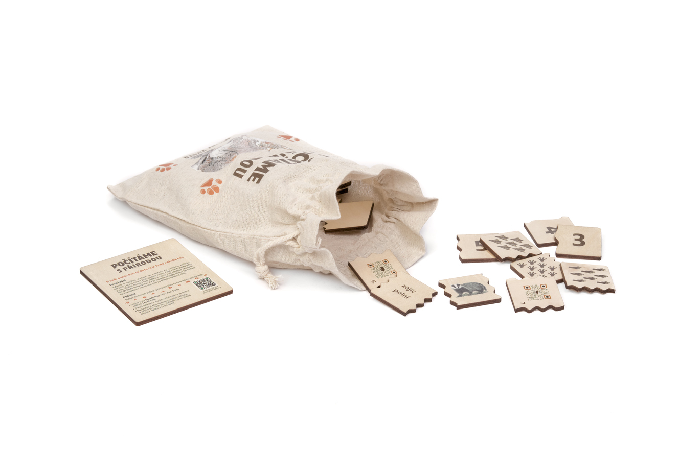 Počítáme s přírodou vyrábí u nás v dílně české ruce z kvalitního českého certifikovaného dřeva. Balení obsahuje 50 dílků (10 sestav) a návod. Každá sestava se skládá z pěti dílků, které obsahují obrázek zvířete, stopy, číslici, název a QR kód. Zabaleno v přírodním látkovém pytlíku s potiskem....