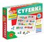 Zbiór kolorowych cyferek, z których każda posiada element umożliwiający wpinanie ich w otwory ażurowej tablicy. Ta prosta zabawa