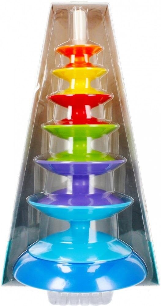 Multikolorowa Edukacyjna Wieża/ Piramidka Bam Bam dostarczy dziecku całą gamę wrażeń sensorycznych aktywnie wspierających jego rozwój. Małe palce z wielkim zaangażowaniem będą odkrywać różnorodność kształtów i powierzchnię obręczy szpulek, których bajeczne, kontrastujące kolory przyciągają wzrok...