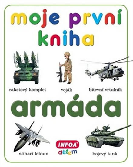Velké tematické leporelo s mnoha barevnými fotografiemi. Děti zde najdou obrázky, které jim přiblíží vojenské povolání a naučí se poznávat lehká a obrněná vozidla, tanky, letadla, lodě a speciální stroje. prečítať celé