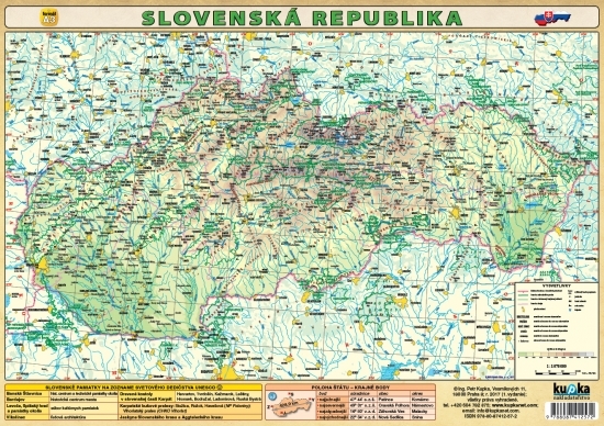 Všeobecnozemepisná mapa Slovenskej republiky so súborom doplnkových mapiek, tabuliek a grafov – administratívna mapa, zemepisné rekordy Slovenska, obyvateľstvo, poľnohospodárstvo a hospodárstvo v aktuálnych číslach. prečítať celé