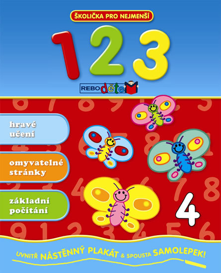 Knížka 123 pomůže dětem procvičovat základní počty. Pomocí různorodých hravých úkolů mohou nejen počítat, ale naučí se též číslice rovnou psát. Stránky knihy jsou omyvatelné, takže na ně lze psát stíratelným fixem. Na přiloženém nástěnném plakátu naleznou děti mnoho příkladů a obrázků z knihy....
