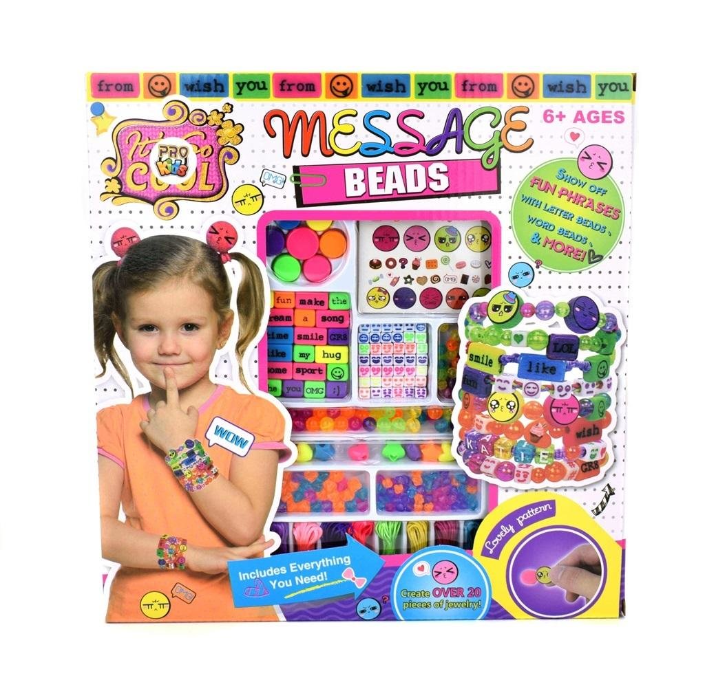 Kreatywny zestaw do tworzenia bransoletek zawiera 8 rodzajów koralików do nawlekania i naklejki. W ten sposób dziewczynka stworzy niepowtarzalną biżuterię dla siebie i swoich przyjaciółek. Wielokolorowe kryształki i koraliki z emotkami i napisami to idealny sposób na kreatywne spędzanie czasu. Nawlekanie koralików ćwiczy także motorykę i poprawia umiejętności manualne.