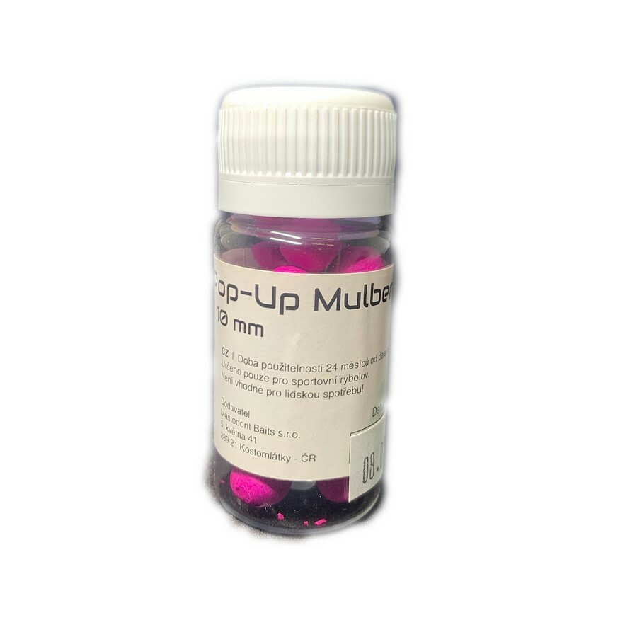 Fluo Pop-Up Boilie Mulberry. Fluo Pop-Up Boilie Moruše 10mm, plovoucí pop-up boilies lze použít buď jako samostatnou nástrahu, nebo v kombinaci s obalovaným těstem nebo potápivým boilies, což vytváří efekt mírně plovoucí nástrahy nade dnem. Díky tomu je návnada pro ryby atraktivnější. Balení: 30...