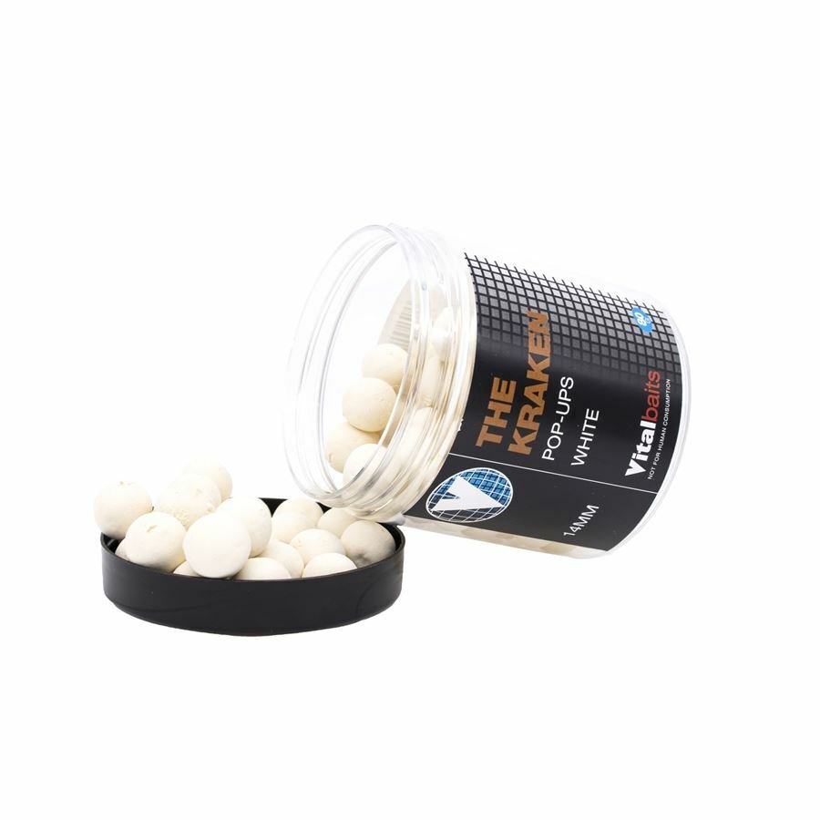 The Kraken Pop-ups doplňují stejnojmennou řadu boilies a jsou na výběr ve třech barvách – přírodní, zářivě růžové a zářivě bílé. Mají velmi specifické olihňové aroma, a abychom ještě více zvýšili jejich atraktivitu, přidali jsme do všech tří variant oleoresin Pískavice (řeckého sena).