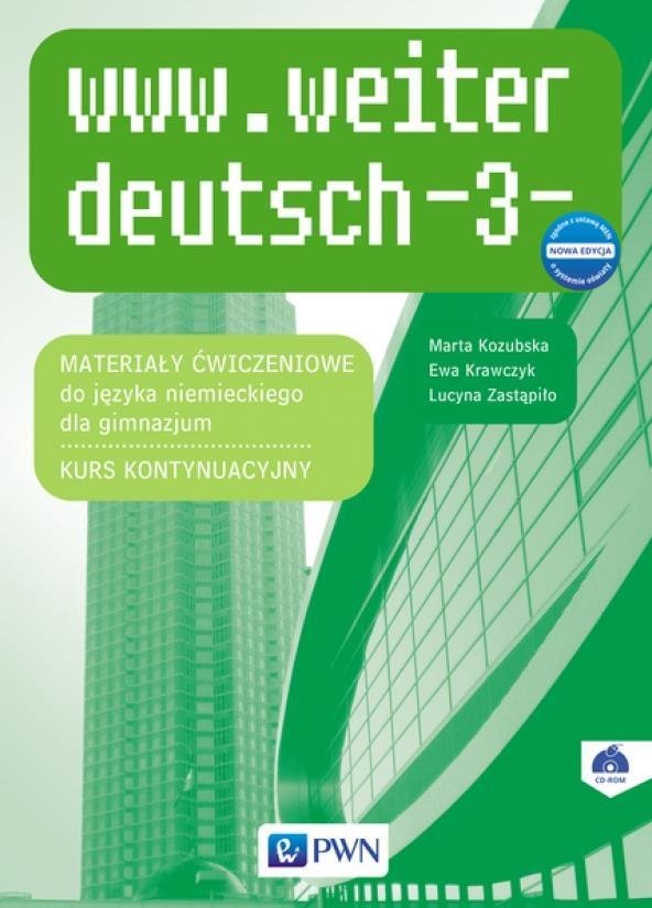 www.weiter_deutsch 3. Nowa edycja. Materiały ćwiczeniowe są ściśle zintegrowane z podręcznikiem i zawierają ćwiczenia utrwalające, uzupełniające i rozszerzające materiał językowy oraz gramatyczny. Ponadto znajdują się w nich ćwiczenia rozwijające umiejętność kreatywnego pisania opatrzone...