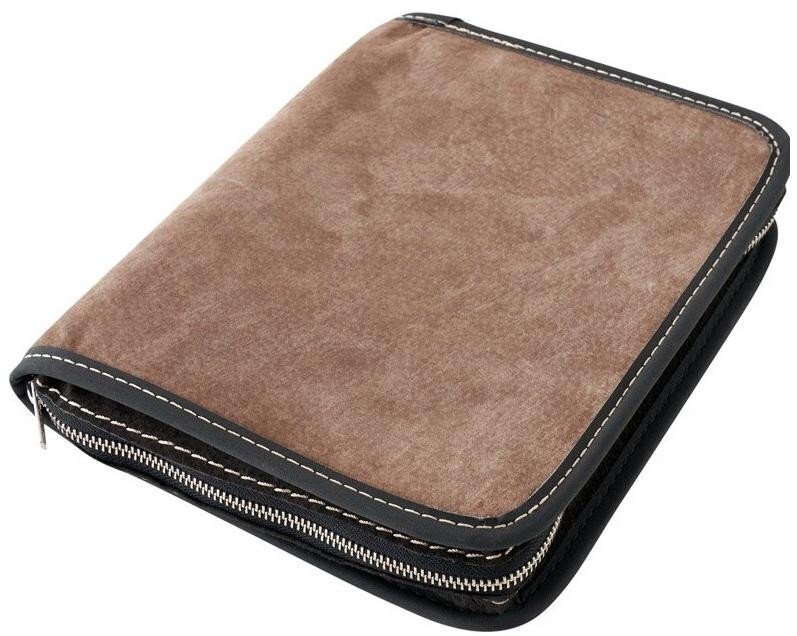 Přírodní kůže, kovový zip, ruční práce. Vhodné pro knihy o maximálních rozměrech: Výška: 24,5 cm, Šířka (součet 2x šířka + hřbet): 42,5 cm Kožený obal na knihu české ruční výroby. Obal na knihu je ušitý z pečlivě vybraných vepřových nebo hovězích kůží z českých a zahraničních koželužen. Na...