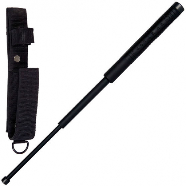 Obušok je vybavený gumovou rukoväťou, ktorá zaisťuje pevný a komfortný úchop. Konštrukcia kombinuje ľahký plast v prvej vysúvateľnej časti a pevnú oceľ v koncovej časti, čo zaručuje optimálnu rovnováhu medzi hmotnosťou a odolnosťou. Tento teleskopický obušok je vždy pripravený na okamžité použitie, pričom jeho dĺžka 52 cm poskytuje dostatočný dosah pre bezpečné a efektívne ovládanie.