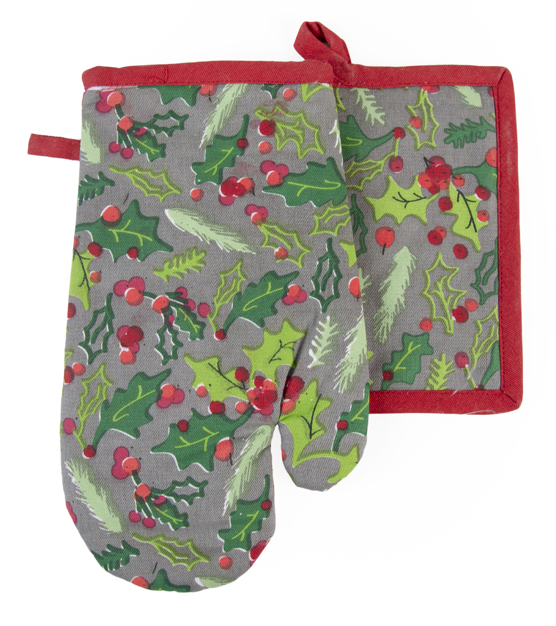Vánoční kuchyňský set vánoční rukavice/chňapka FESTIVE FEAST - CESMÍNA 18x30 cm/20X20 cm