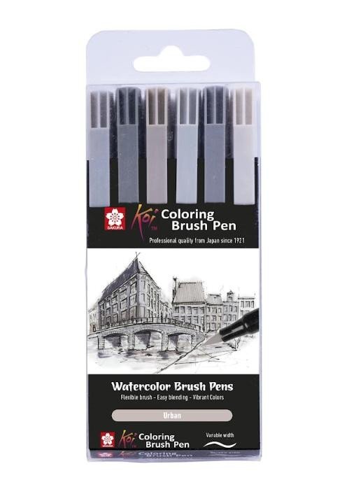 Sakura Sada akvarelových fixů se štětečkem - Urban 6 ks