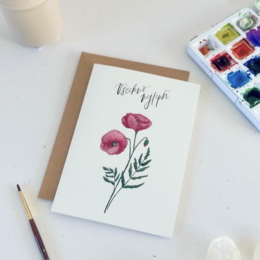 Obsahuje:1 ks přání 12 x 17 cm1 ks přírodní obálkyOriginální autorský designPřání ilustrovala česká výtvarnice Bára z Nikolajky. Ilustrace byly vytvořeny technikou akvarelu.Autorské ilustrace jsou inspirovány českou přírodou a vlčími máky, které máme spojené s naším létem na chalupě, kde bylo...