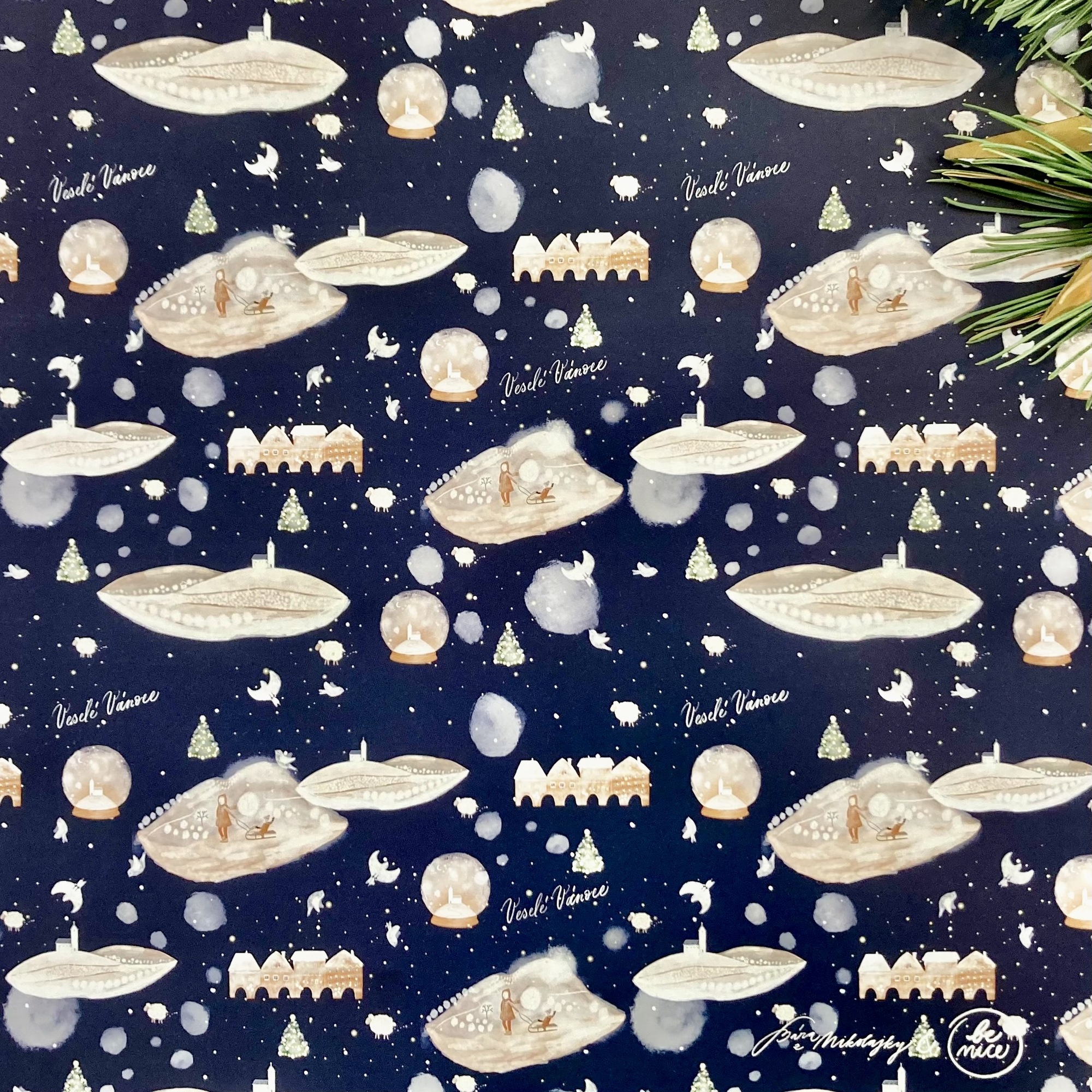 Výrobek obsahuje: 1 ks balicího papíruRozměr:47 x 68 cmči68 x 98 cmBalicí papír posíláme v ruličce, takže vám přijde bez ohybů. :) Be Nice balicí papíry mají na spodní straně mřížku, pro snadné stříhání bez nevzhledných zubů. Originální autorský designVánoční balicí papír Nebeská procházka...