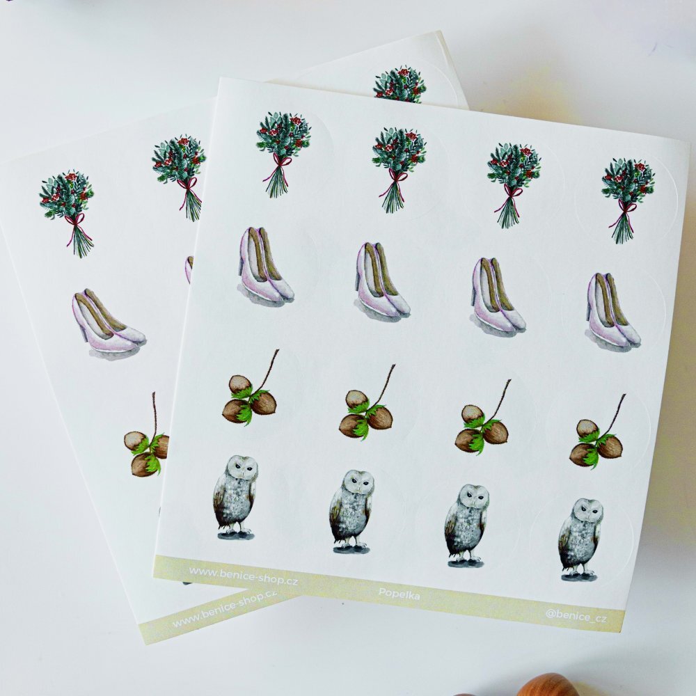 Obsahuje:32 ks samolepekPrůměr: 2,8 cmOriginální autorský designSamolepky Popelka ilustrovala česká výtvarnice Bára z Nikolajky. Ilustrace byly vytvořeny technikou akvarelu a kreslení. Autorské ilustrace ladí s vánoční balicí kolekcí Popelka. Na samolepkách najdete motivy sovy, oříšků, lodiček a...