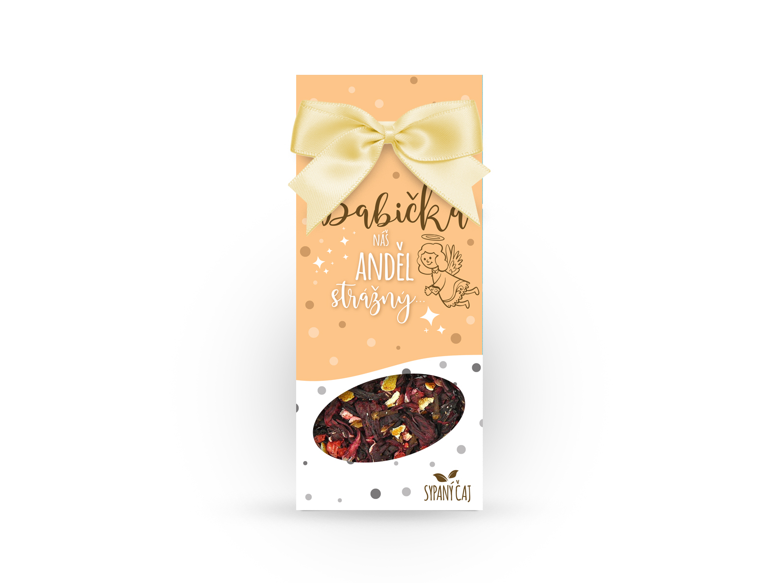 Dárkový čaj s věnováním „babička - náš anděl strážný“.