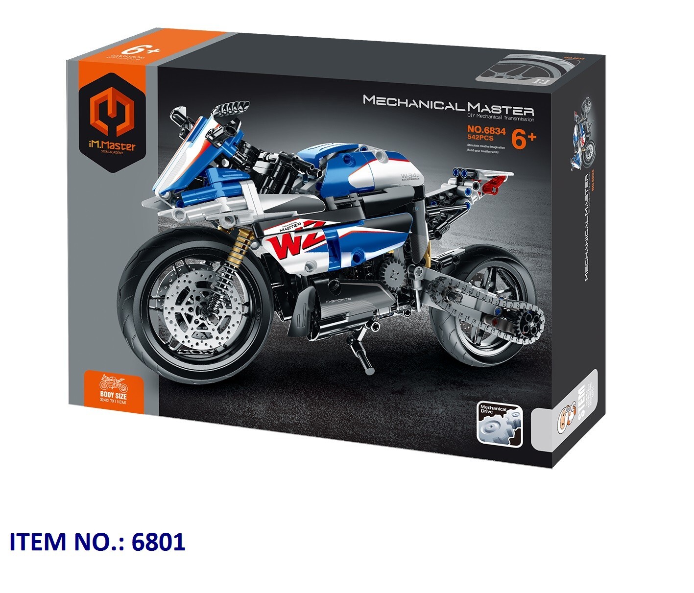 iM.Master Stavebnice motorka modrá. Rozměry 32,4x17x11 cm. 542 dílků. Otáčecí zadní kolo s řetězem, fungující zadní tlumič. prečítať celé