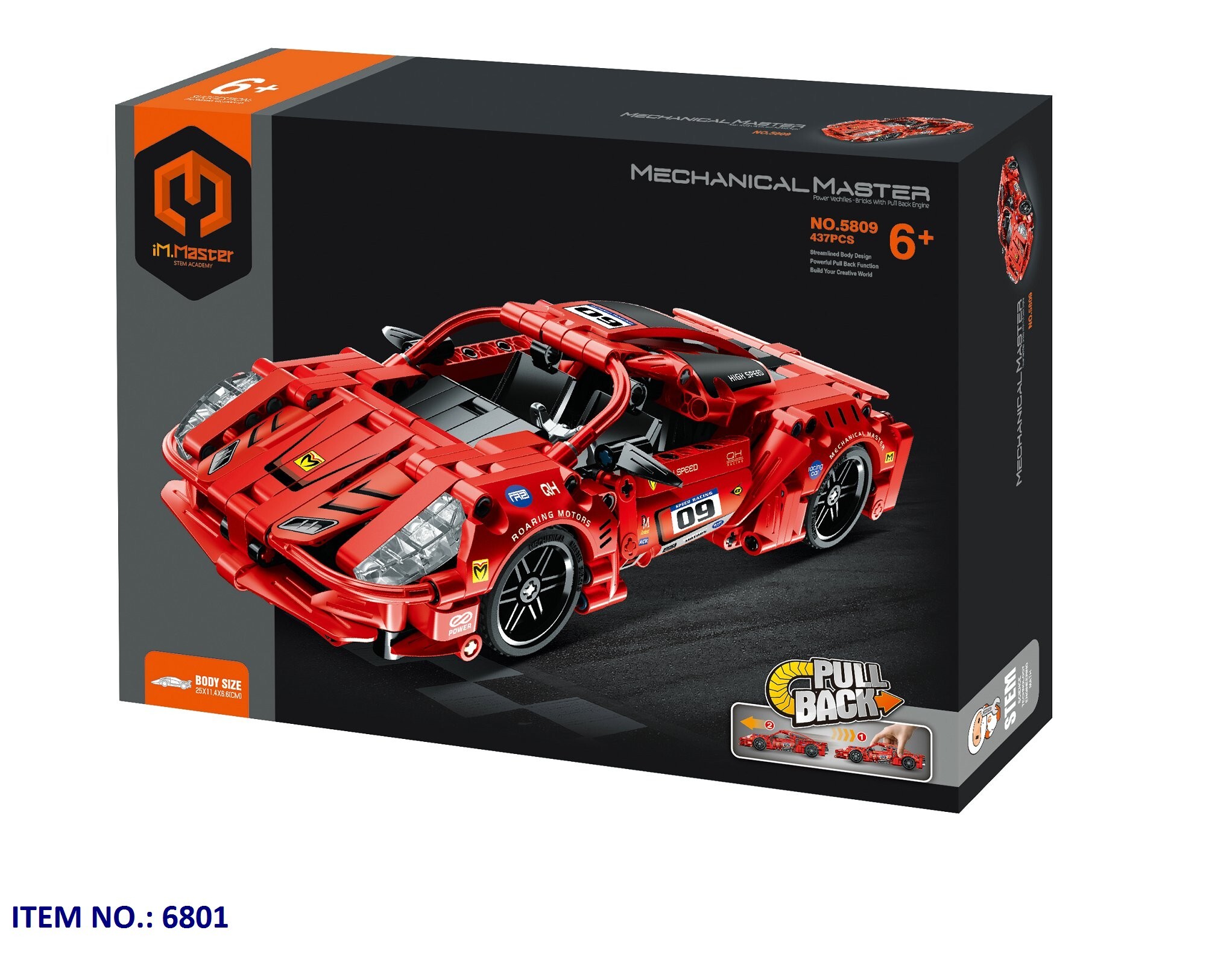 iM.Master Stavebnice závodní auto červené. Rozměry 25x11,4x6,6 cm. 437 dílků. Na zpětné natažení. Otevírací dveře. prečítať celé