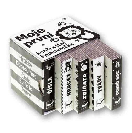Objevte vysoce kontrastní černobílá leporela v této praktické knihovničce. Každé leporelo obsahuje výrazné obrázky čísel, zvířat, tvarů či předmětů, které nejmenším dětem napomáhají s přirozeným vývojem a raným učením. Užijte si s dětmi zábavu při prohlížení a objevování okolního světa! Miminka si otáčením a manipulací rozvíjí motoriku a koordinaci pohybu prstíků.