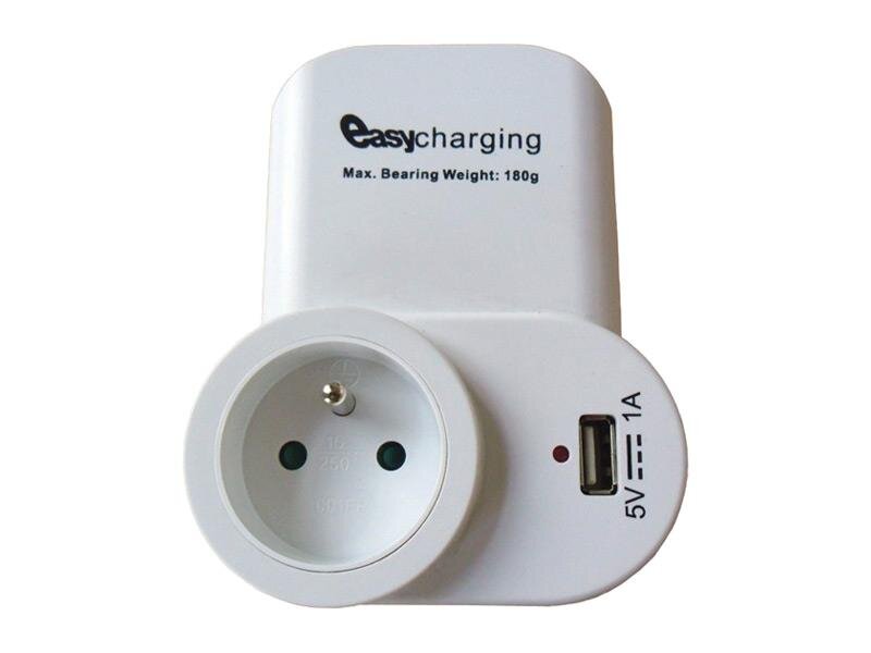 USB nabíjecí adaptér s průběžnou zásuvkou, 1000mA, držák na telefon, bílýIdeální pro dobíjení multimediálních zařízen Držák na GSM telefon, MP3 přehrávač apod, max. nosnost 180g - 1 x USB výstup typu A - 1 x uzemněná zásuvka 230V - vstup: AC 230V, 50Hz - výstup: DC 5V/1000mA...