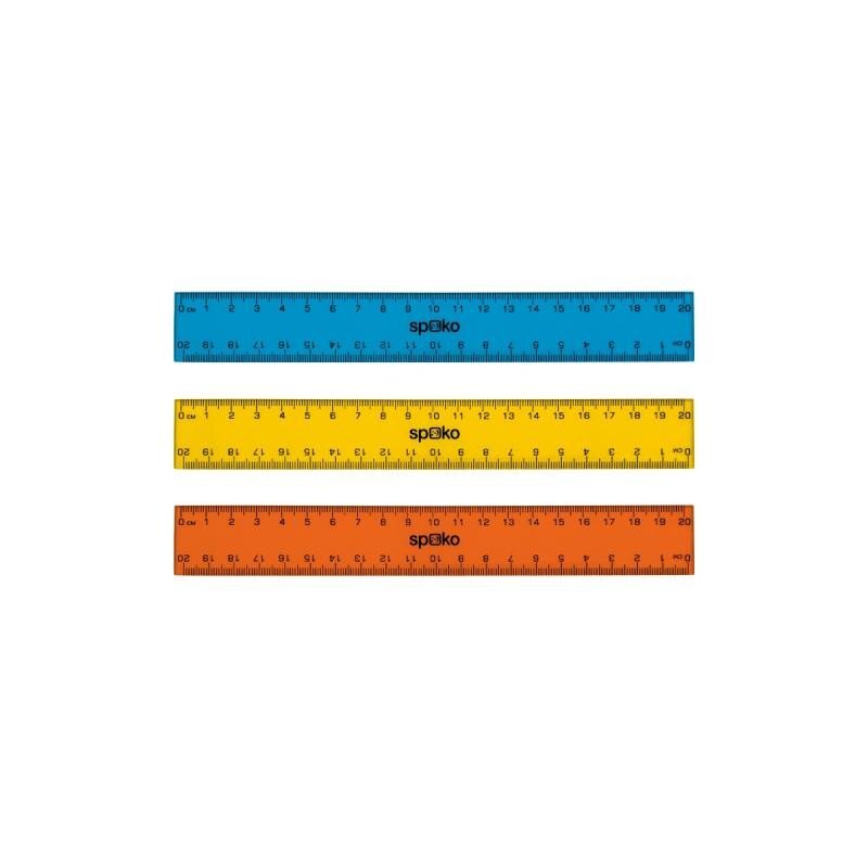 Ploché pravítko s předtištěnou stupnicí o délce 20 cm. Zkosená hrana pro přesnější a pohodlnější rýsování. • měřítko: 20 cm • materiál: pevný a odolný polystyren • předtištěná stupnice • mix barev: žlutá, modrá, oranžová prečítať celé
