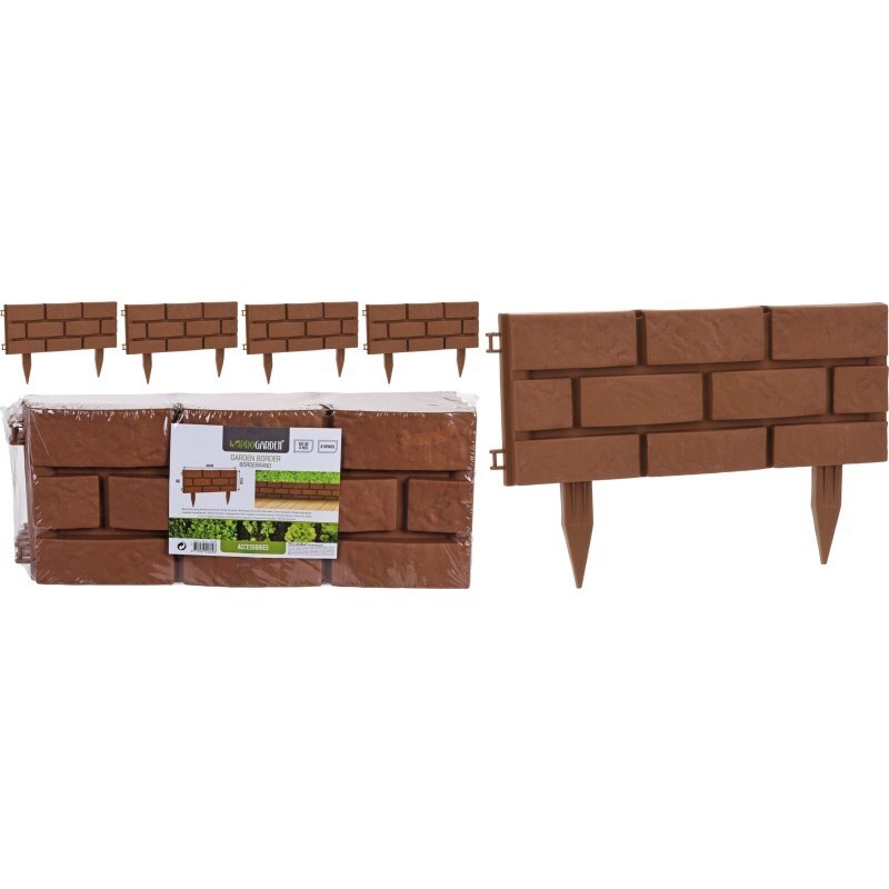GARDEN FENCE SET OF 4PCS, PP MATERIAL, WEIGHT OF SET 700 GRAM, SIZE 420X175MM, 8X SPIKE 125MM. IN TERRACOTTA COLOUR, SHRINKED WITH COLOUR LABEL/ 452X175X87MM, Shrinkwrapped insertlabel (SWL): 4 X pcs Garden fence, Polypropylene, 420X175X1MM,8 X pcs Spike 125mm / CFT 2,01,(7.301/40ft HQ)