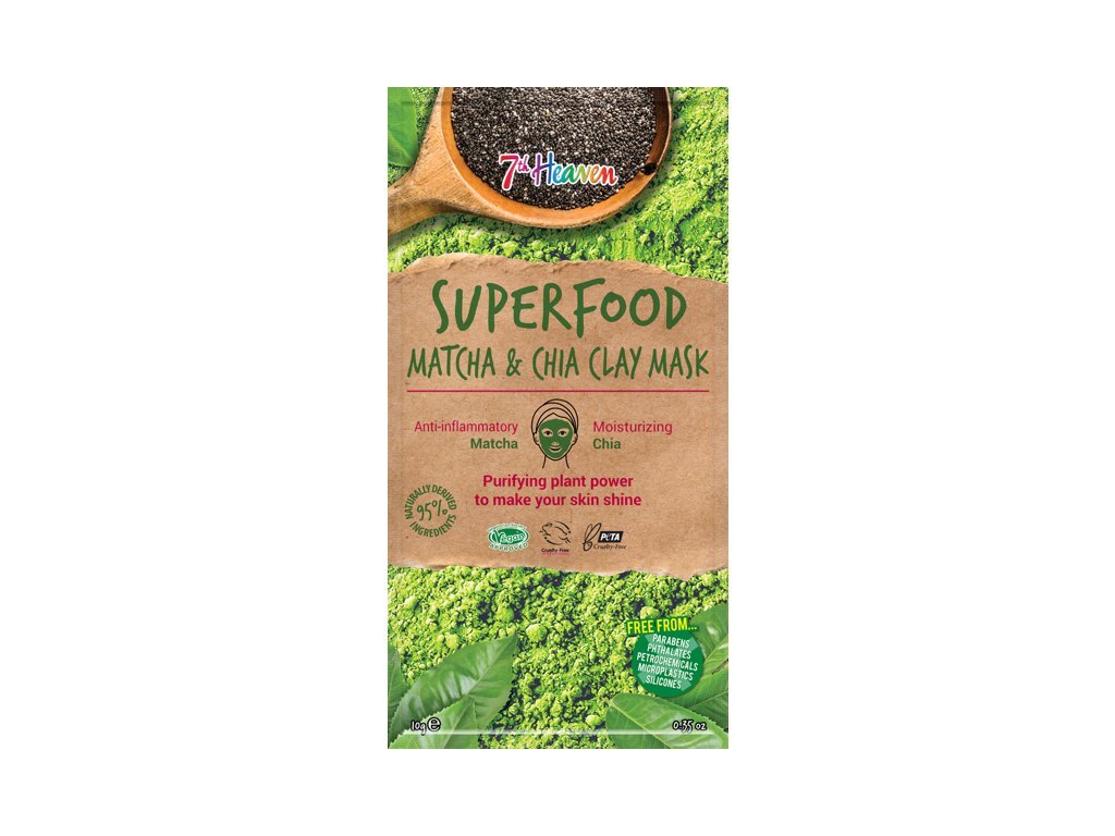 7th Heaven Superfood slupovací maska Matcha & Chia představuje perfektní řešení pro drobné nedokonalosti pleti. Je tak zelená a voňavá, že se budete cítit nádherně okouzleni. Obsahuje matchu, která je plná antioxidantů a zvláčňující Chia. Napomáhá oživovat a zjemňovat pleť, zvyšuje její zářivost, a to vše jediným použitím masky.