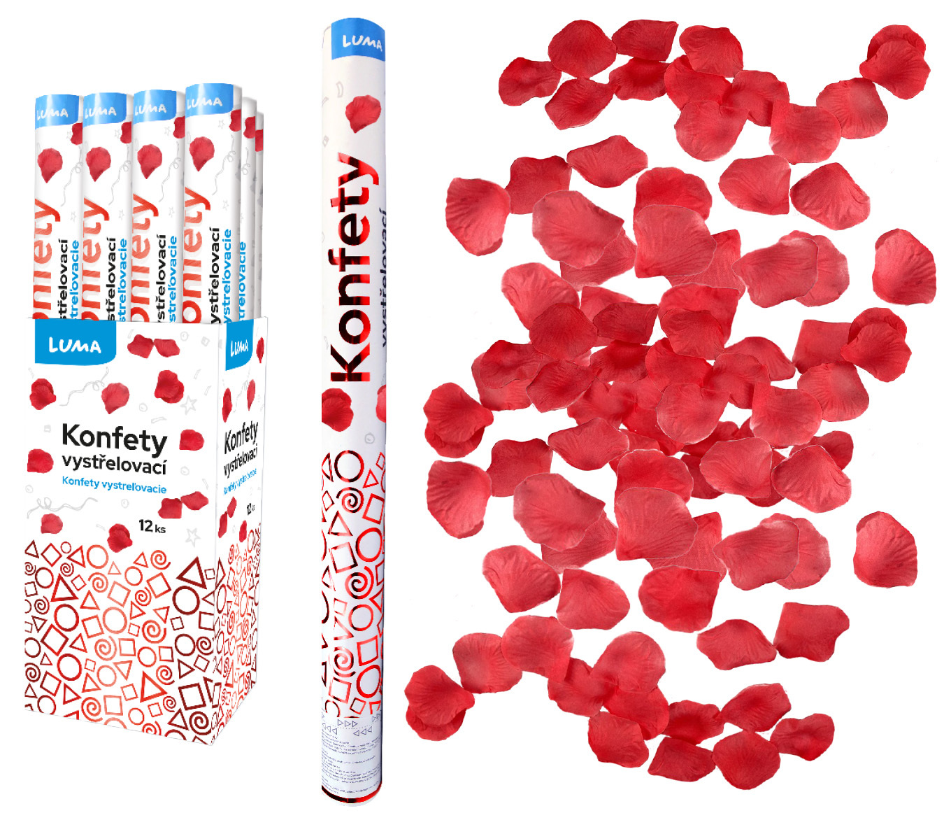 Konfety vystřelovací 60cm plátky růží červené LUMA