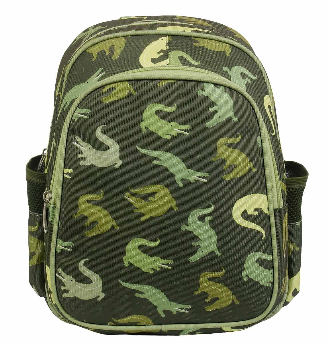 Prostorný dětský tmavě zelený batoh s krokodýli je ideální do školky nebo na cesty. Batoh má prostornou hlavní komoru, izolovanou přední kapsu na svačinu a nápoje. Láhev na pití se vejde i do jedné ze dvou bočních kapes. Praktické jsou polstrované ramenní popruhy a hrudní popruh proti sklouznutí...