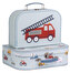 Sada dvou kartonových kufříků s motivem vozidel. Kufříky jsou ideální pro ukládání předmětů a hraček. Poslouží i na uložení výtvarných potřeb. Sada obsahuje 2 různě velké kufříky vyrobené z odolného kartonu s polyesterovým prošíváním. Oba jsou vybaveny kovovým madlem a sponou pro zajištění kufru.