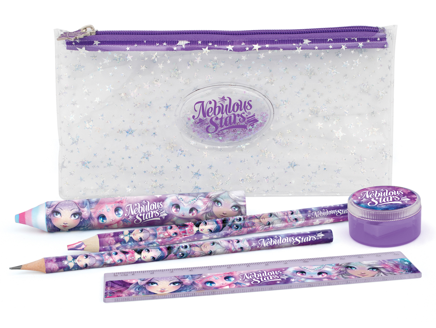 Nebulous Stars Sada na psaní. Sada obsahuje pouzdro, duhovou tužku, tužku, gumu, pravítko, ořezávátko. 10 ks display box. prečítať celé