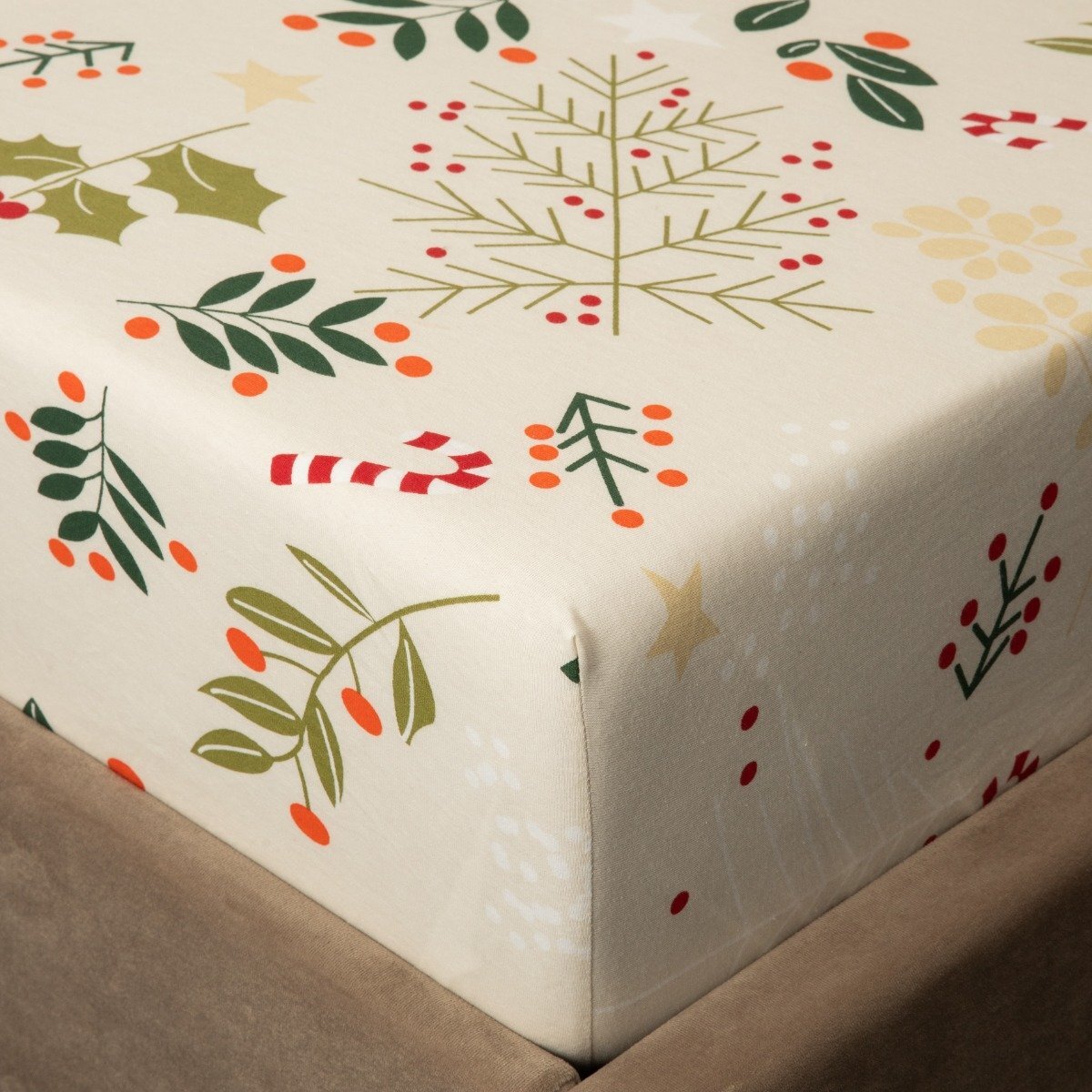 Jersey bavlněné prostěradlo | GODIS | vánoční vzor | 140x200 cm | 716348