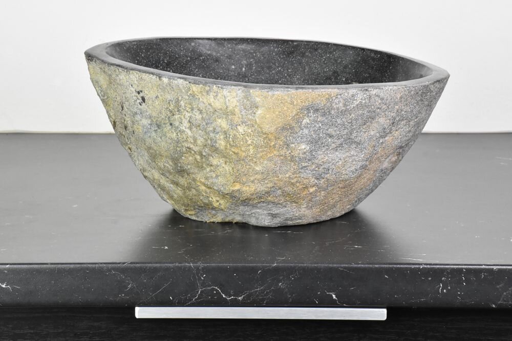 Umývadlo o rozmeroch 34 x 30 cm a výške 14,5 cm je vyrobené z pravého riečneho kameňa, ktorého prirodzené tvary a textúra dodávajú každému kusu absolútnu jedinečnosť. Vysoko odolný materiál je nielen estetický, ale aj praktický - ľahko sa udržiava v čistote.
