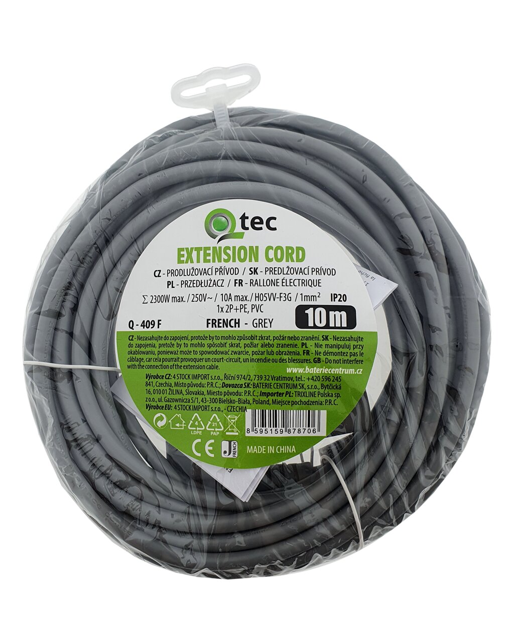 Slouží k prodloužení elektrické energie tam, kam pevná zásuvka nedosáhne.Prodlužovací kabel Q-409FDélka: 10mPočet zásuvek: 1Vypínač: neBarva: šedáMateriál: PVCTyp: FRENCHMaximální zatížení: 250V ~ , 10A max., Σ 2300W max.Typ kabelu: H05VV-F 3G 1mm²Určeno pro vnitřní použitíKrytí: IP20...