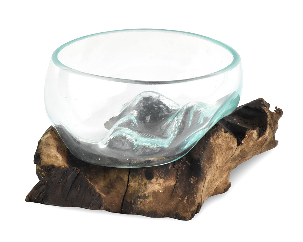 Skleněná mísa na dřevě malá 12 cm - var. B