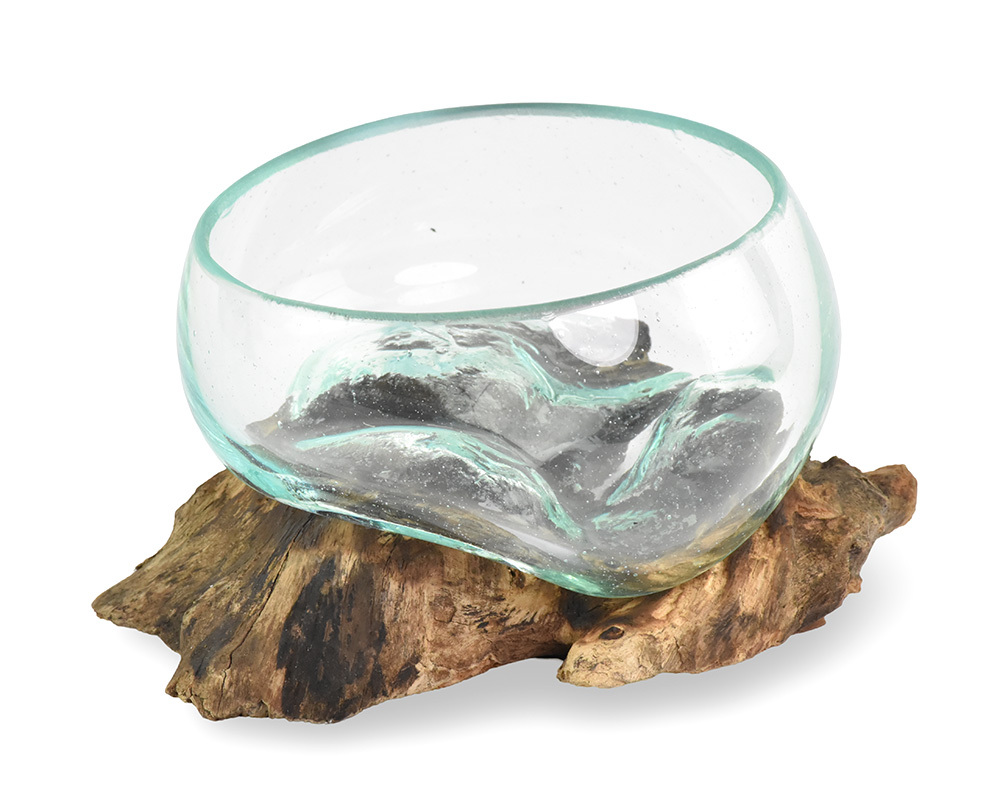 Skleněná mísa na dřevě malá 12 cm - var. G