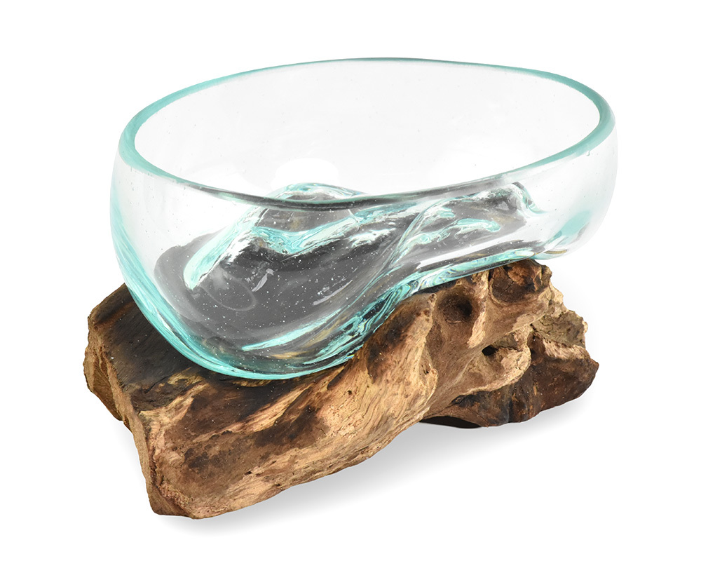 Skleněná mísa na dřevě malá 12 cm - var. A